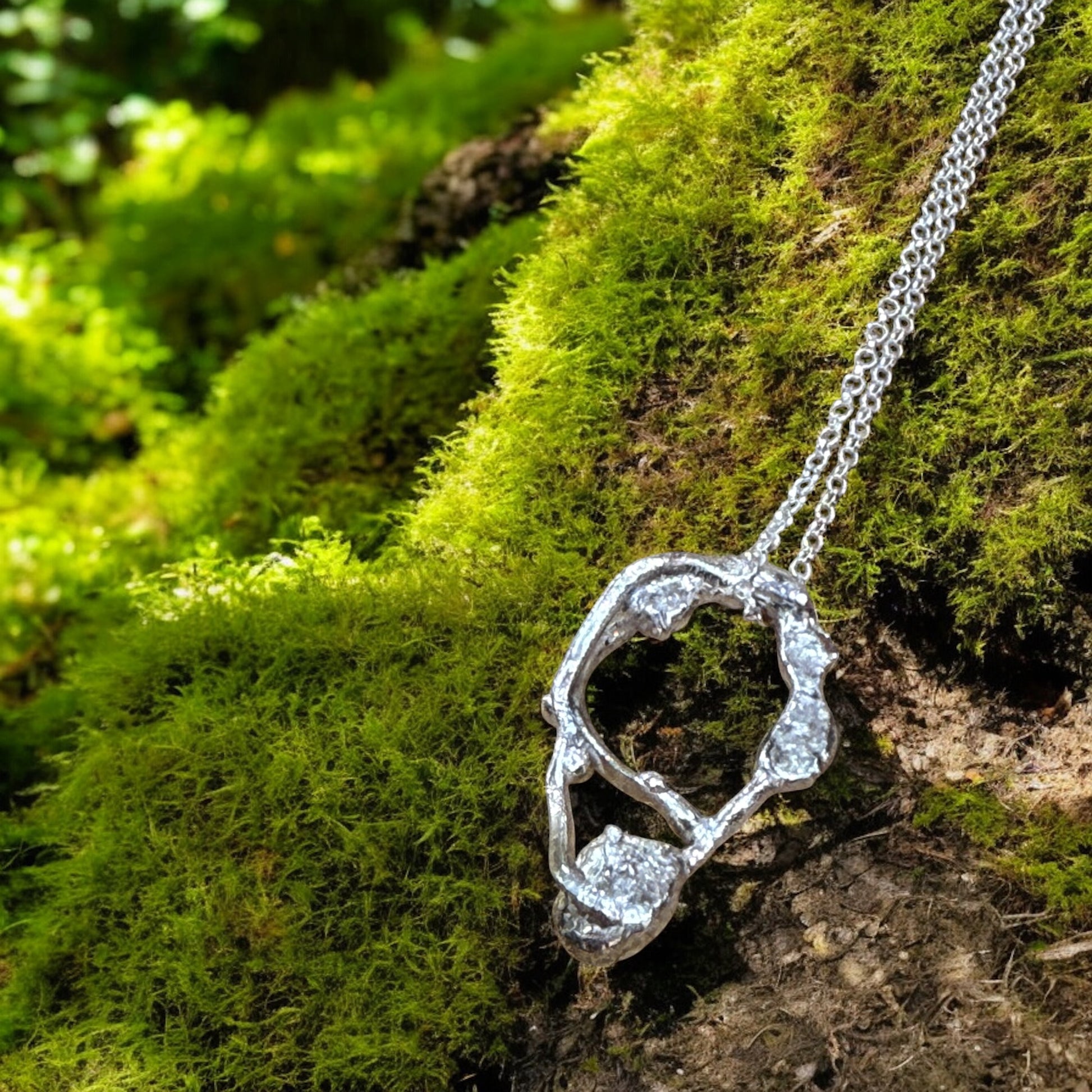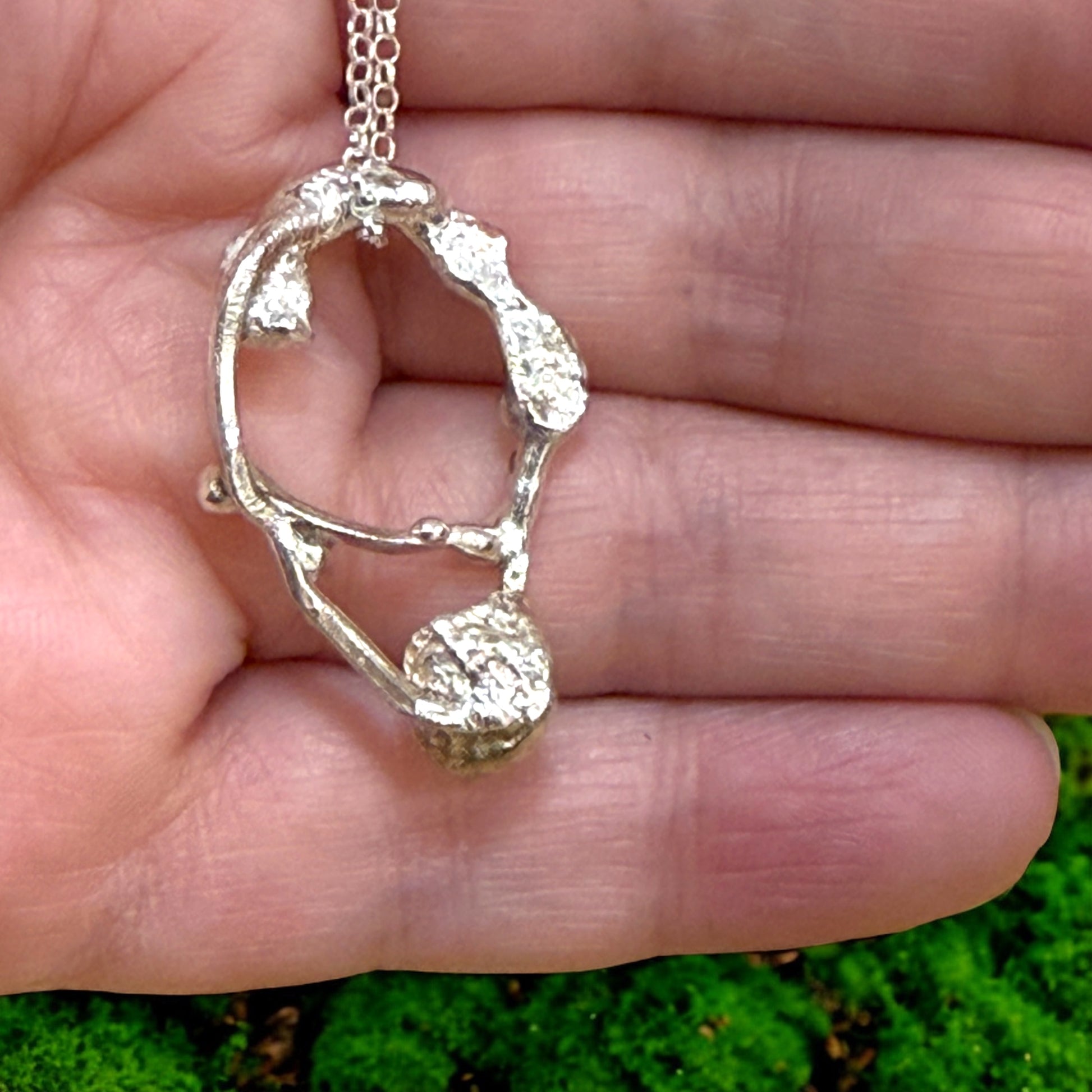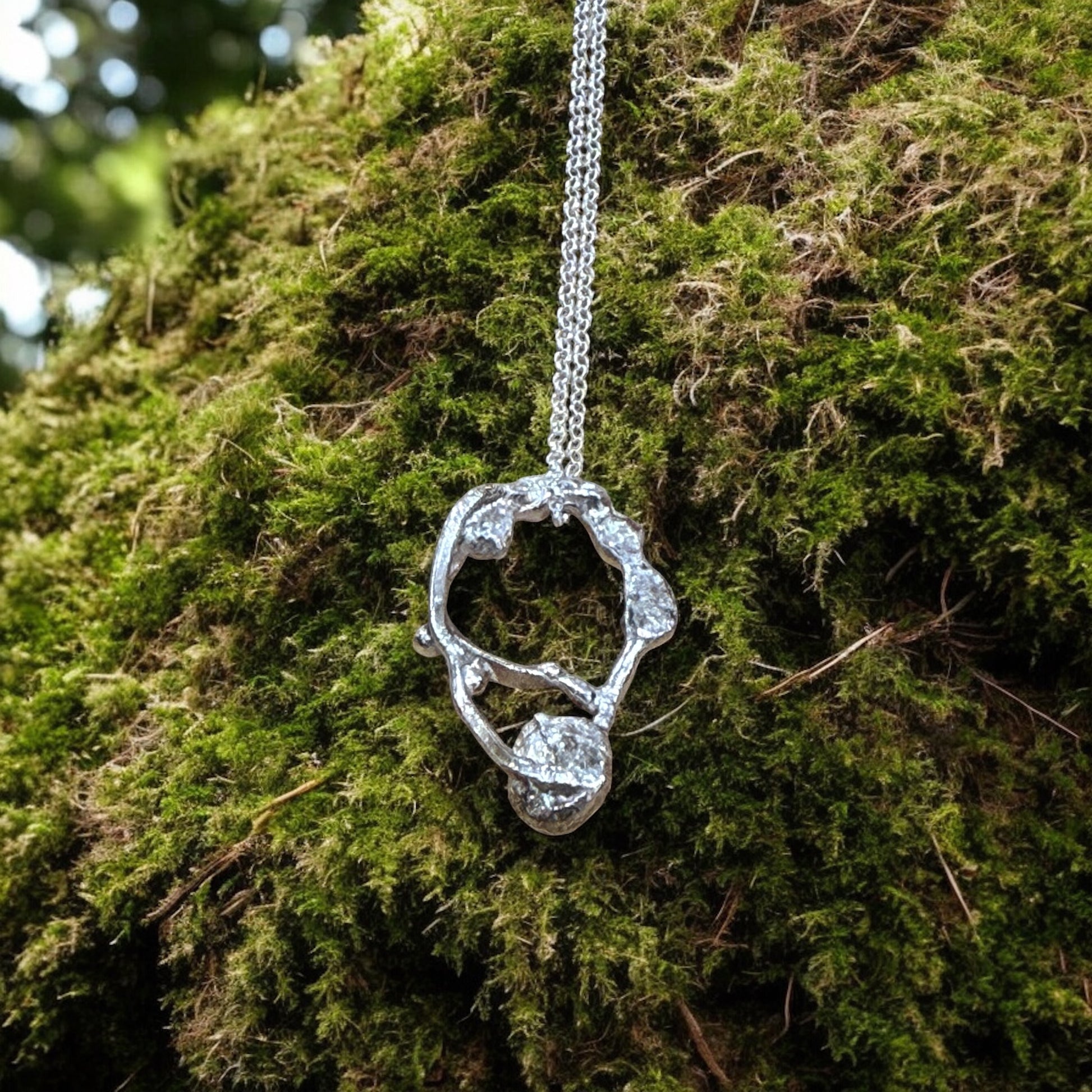 Shaped by flame, this silver pendant twists and curls like old roots wrapping around hidden stones, protective, tangled, sure of their own path. It wasn’t cast or carved. Just silver, coaxed under heat, finding its form slowly. A structure shaped by instinct, not measurement.