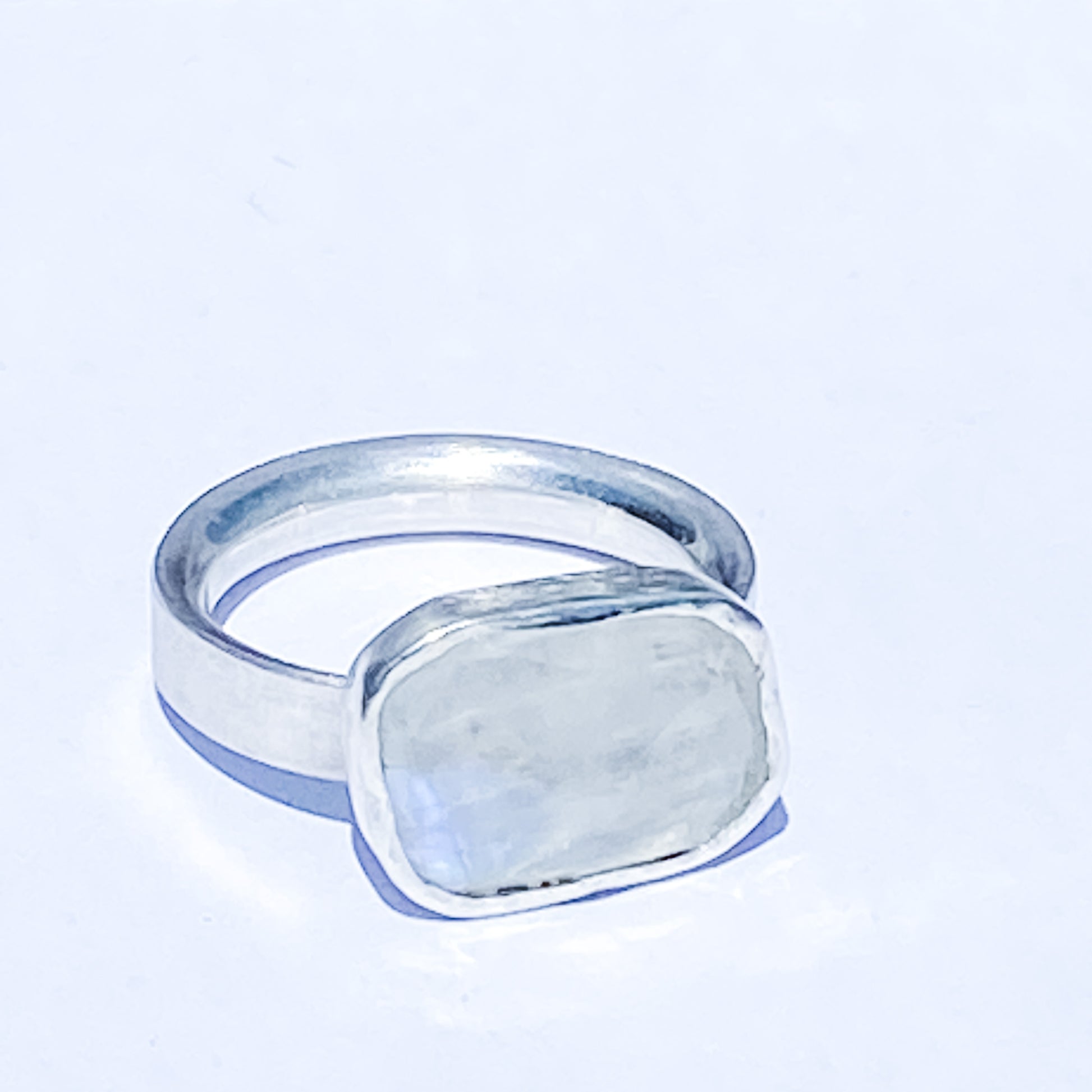 A ring fit for any goddess - it's got a rose-cut moonstone cabochon, set in recycled sterling silver for a seriously stylish look.