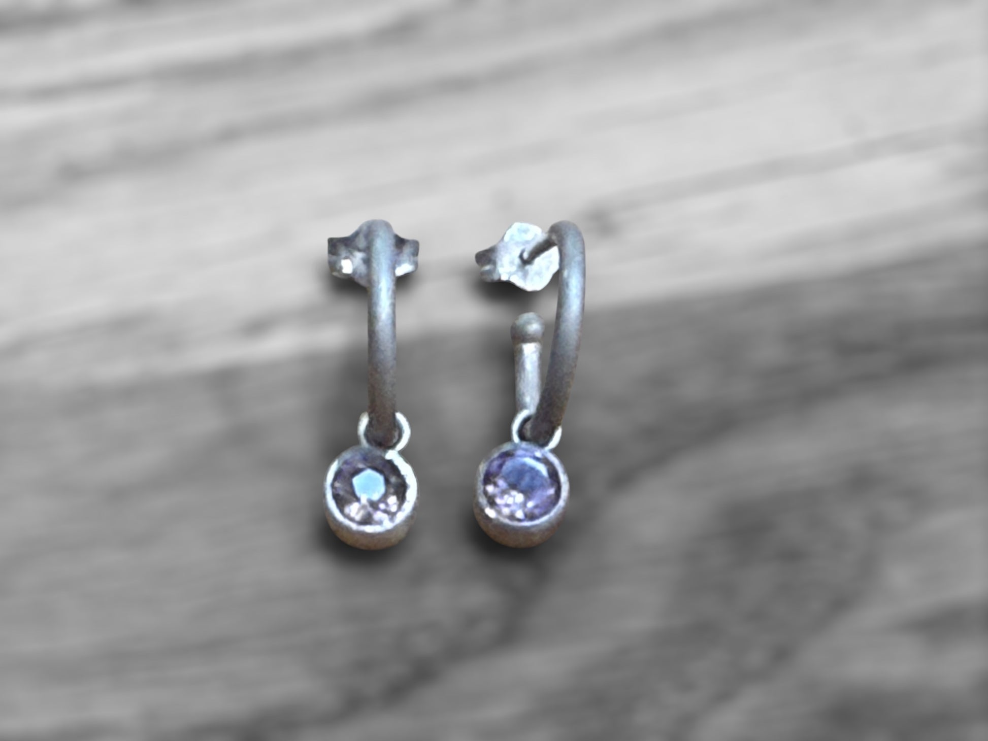 There’s an old story that amethyst was born from starlight and wine, a stone of clarity for those who walk between waking and dreaming. These hoops hold a fragment of that tale.